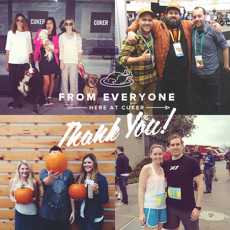 We are so grateful for our clients, partners, employees, families, and friends that have made 2013 a success. We couldn't have done it without you! From all of us at Cuker, thank you and Happy Thanksgiving!
